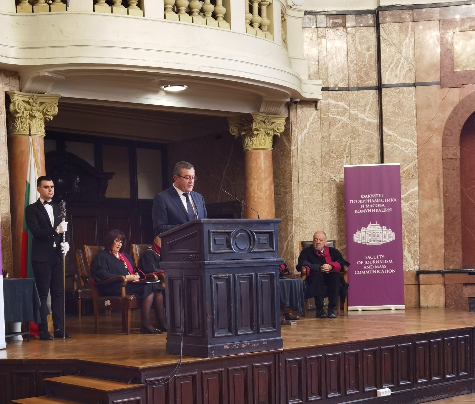 В академичното тържество участва и президентът Румен Радев. „Според мен бъдещето на България като модерна и просперираща европейска държава до голяма степен ще зависи от вас – днешните студенти и бъдещи журналисти. От вашия професионализъм, отдаденост и гражданска смелост. Защото, напускайки университета, ще застанете на пътя на лавината от дезинформация и неточна информация и ще трябва да избирате“, каза той.