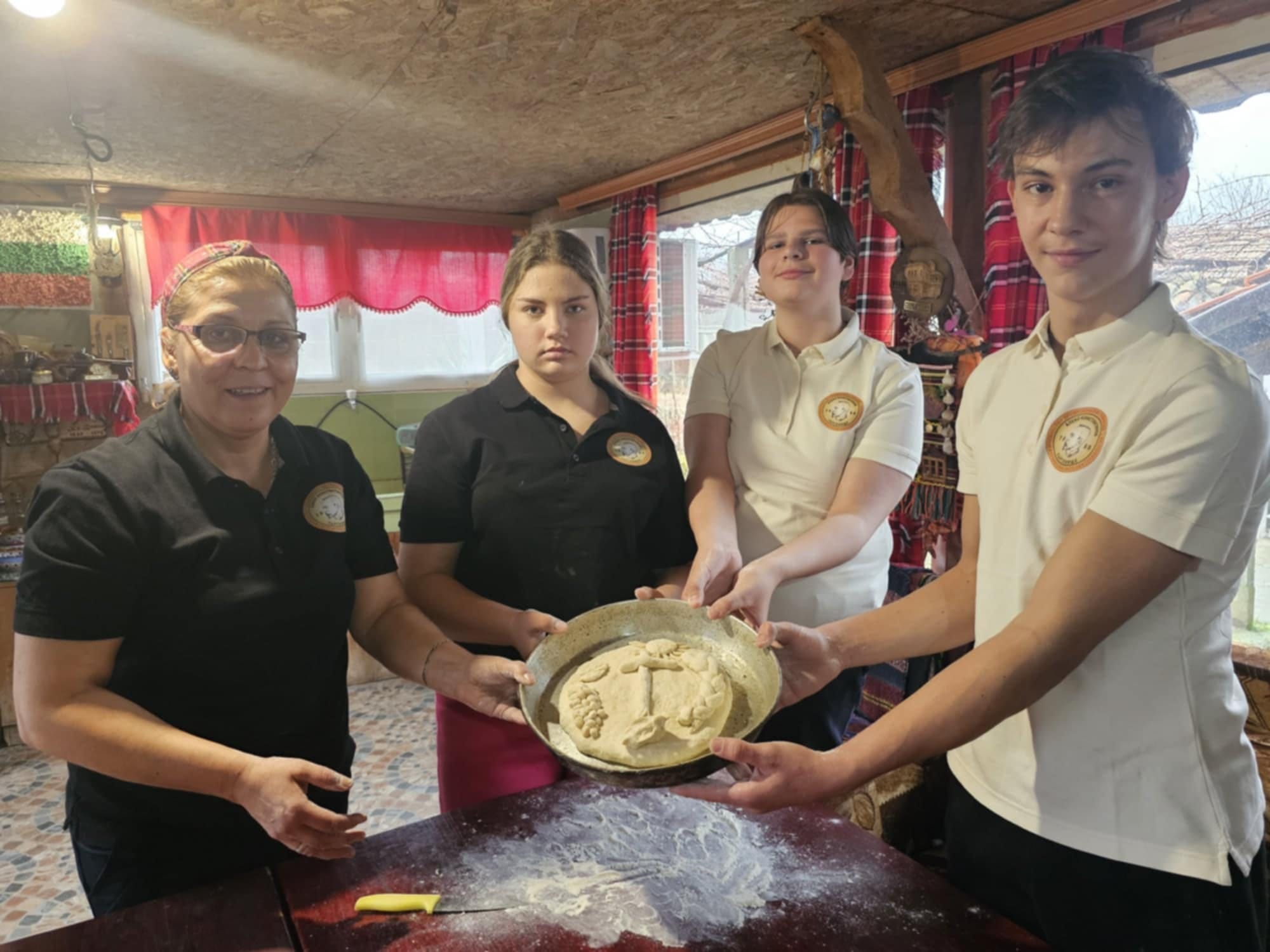 Върху омесената питка учениците поставят различни елементи, като обясняват какво символизира всеки от тях.