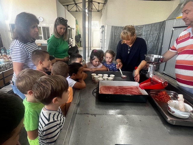 и посещават бабата и дядото на едно от децата в село Победа. „Посрещнаха ни с пълна маса, но децата знаят, че който не работи, не трябва да яде, затова се захванахме за работа. Събрахме последната реколта – пипер, домати, чери домати, патладжан, тикви и грозде. Разгледахме стопанския двор, видяхме пуйки, различни видове кокошки, събрахме яйца и научихме как се мели фураж. След това приготвихме вкусен доматен сок от измитите и нарязани зеленчуци. Беше незабравимо преживяване за всички“, допълва Яница.