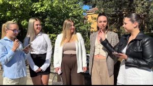 Тогава по програма предстои единайсетокласниците да изучават материал от модула „Мултимедия“. „В него учим как се правят снимки и видео и след това как се сглобяват и добавят ефекти. И така решихме да направим подкаст, в който да видим как се случват нещата на практика“, разказва за „Аз-буки“ Дора Козарева. И часовете се получават толкова различни и интересни, че за изключително кратък срок всички ученици от класа се увличат в работата по новия проект.