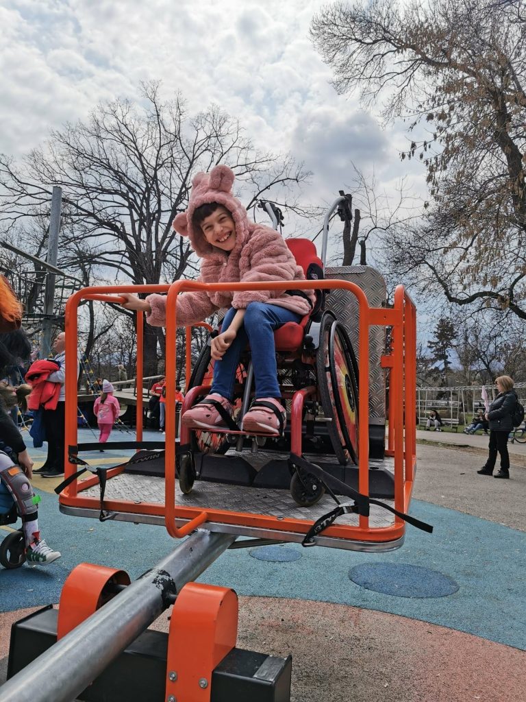 Чрез кампанията „Да играем ЗАЕДНО“ Ани Йончева успява да осигури 25 комбинирани люлки-везни за деца в инвалидни колички.