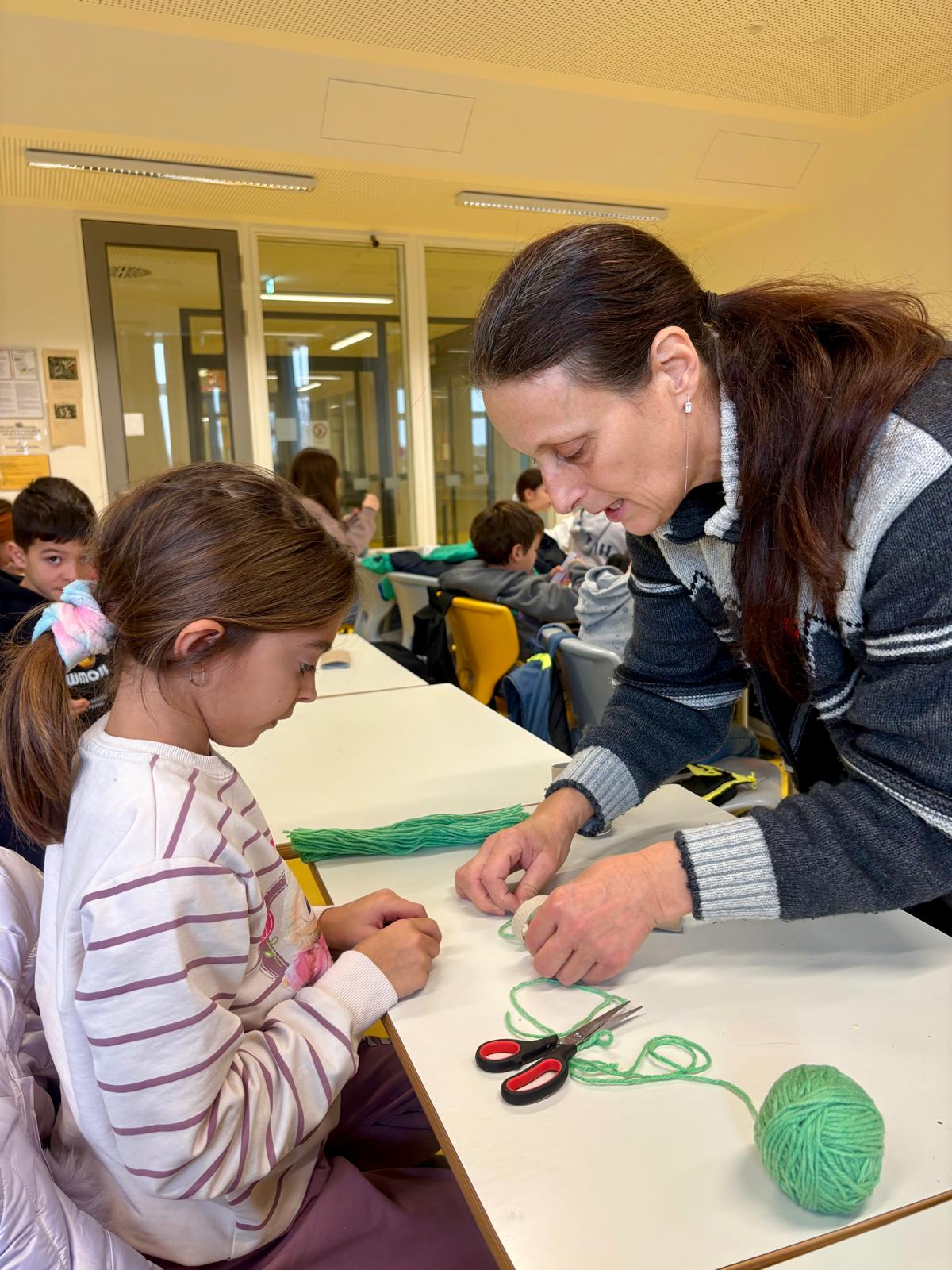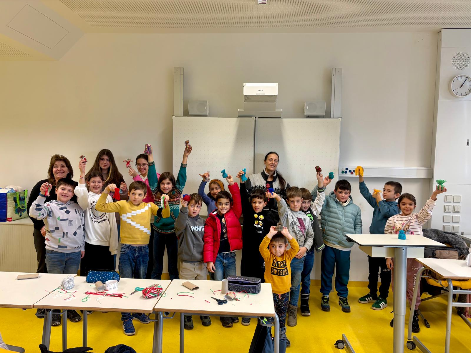 Българското училище не пропуска и традиционната коледна работилница, в която децата с много ентусиазъм изработват коледни шапчици от прежда и сътворяват празнична атмосфера, изпълнена с усмивки и творчество.