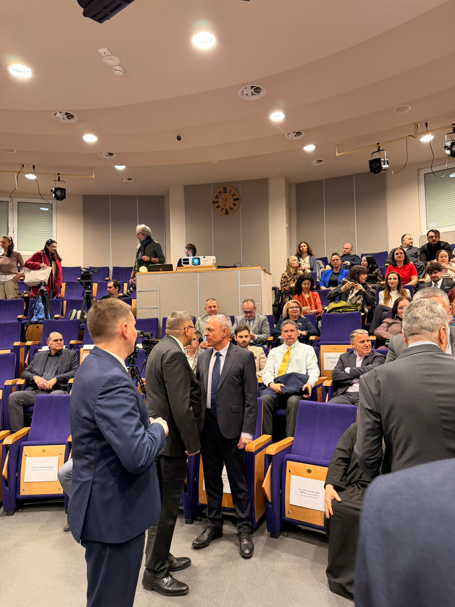 Поздравителни адреси са прочетени от името на президента Илияна Йотова, както и от кмета на Бургас Димитър Николов. Поздравления отправят и представители на академичната общност, сред които Българската академия на науките, Академията за музикално, танцово и изобразително изкуство „Проф. Асен Диамандиев“ – Пловдив, Националната спортна академия, Техническият университет и Бургаската художествена галерия.