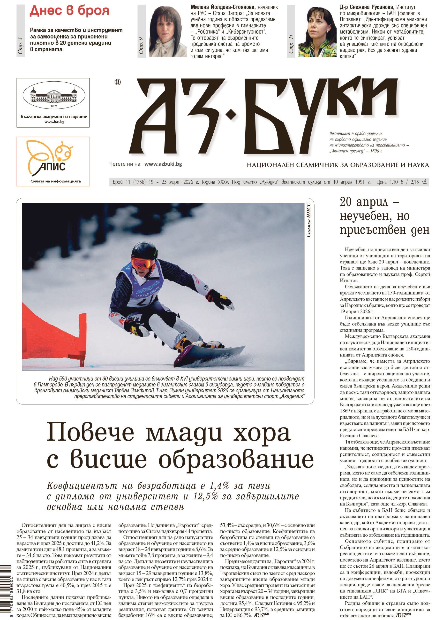 <h4><img class="size-medium wp-image-225979 alignleft" src="https://azbuki.bg/wp-content/uploads/2026/03/v.-az-buki-br-11-215x300.jpg" alt="" width="215" height="300" /></h4> <h4>В новия брой четете:</h4> - Повече млади хора с висше образование - Аз-буки“ представя в БАН „Стопанска история на българите в Османската империя“ - Училища създават екипи от дигитални лидери - Прилагат пилотно рамка за качество в детските градини - В СУ „Димитър Благоев“ – Провадия, преобръщат класическото обучение - Тества се модел за интеграция чрез дуално обучение - Милена Йолдова-Стоянова, началник на РУО – Стара Загора: Предлагаме две нови професии в гимназиите - Да възпиташ устойчивост срещу зависимостите [flipbook pdf="https://azbuki.bg/wp-content/uploads/2026/03/v.-az-buki-br.-11-2026-g.pdf"] <a href="https://azbuki.bg/wp-content/uploads/2026/03/v.-az-buki-br.-11-2026-g.pdf" rel="noopener">Изтеглете</a> броя на вашeто устройство.