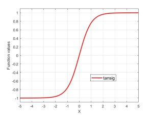 ANN is considered to be successfully trained if the regression value is greater than 0,9. Each of the hidden neural layers is activated by a selected nonlinear activation function. The activation functions used for the ANN operation in the MATLAB environment are respectively: for layers one and two sigmoidal – Logistic Sigmoid (Fig. 4(a)); for layer three tangential – Hyperbolic Tangent Sigmoid (Fig. 4(b)); for the output layer a linear activation function – and Linear transfer function (Fig. 4(c)) were used.