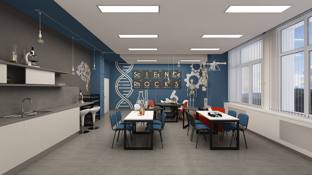 Опитът, който „Юнион Интерактив“ има в изграждането на иновативни STEM пространства, ни дава възможност да оформим едно концептуално виждане относно това какви възможности би следвало да предоставя технологичното оборудване в един модерен STEM център. То трябва да бъде разположено в логически свързано учебно пространство, изградено върху концепцията за тристепенна градация на структурата, формата и начина, по който се предава и усвоява учебно STEM съдържание, а именно: