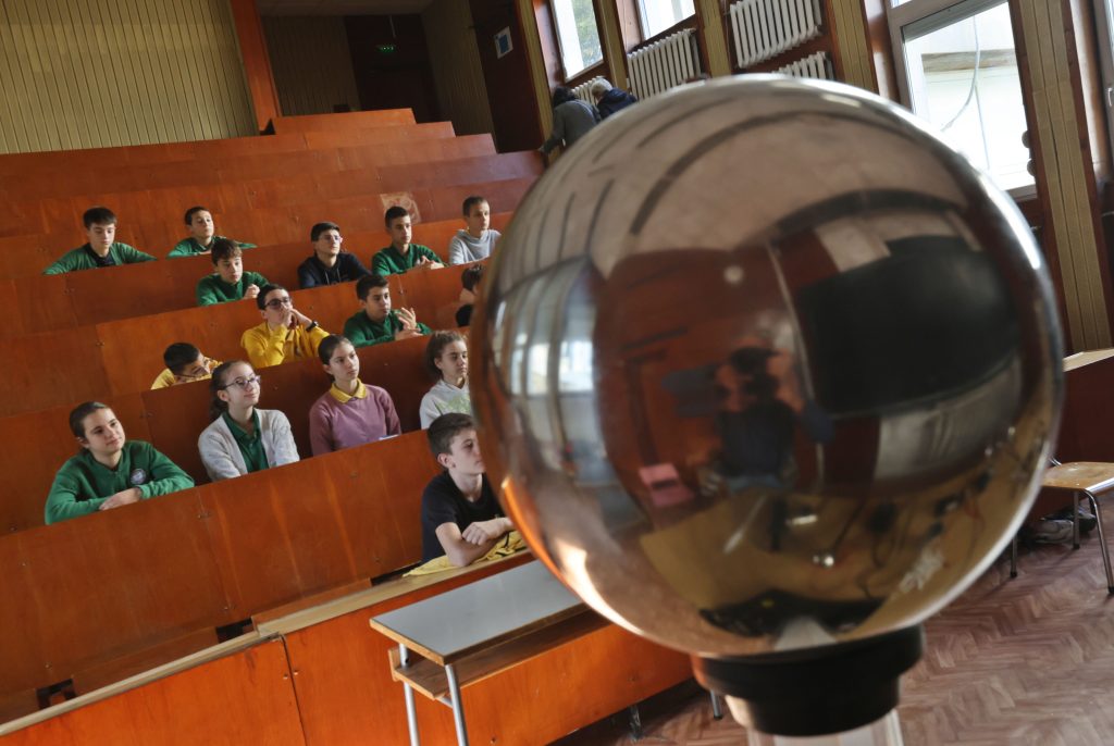 Учениците са тук в редовния си час по физика, изнесен обаче във Физическия факултет, разбираме от тяхната учителка Иванка Маринова.