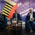 Проф. Милко Палангурски, проф. проф. Иван Русев и Емил Спахийски, директор на Национално издателство „Аз-буки“, на премиерата на „Стопанска история на българите в Османската империя“ (от ляво надясно)