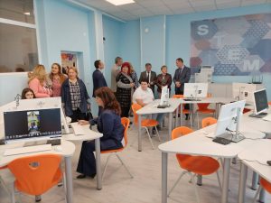 Кабинетът по математика и информатика пък е оборудван с многофункционално лазерно устройство, интерактивен дисплей и последен модел компютри.