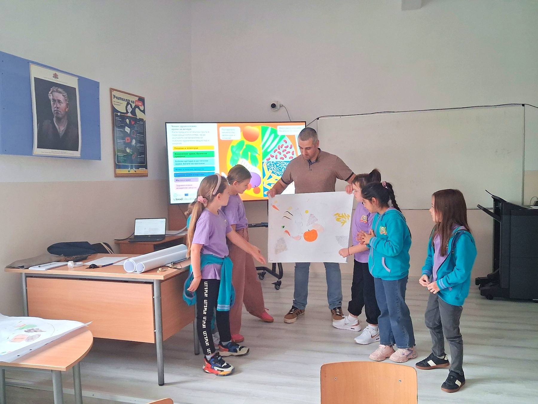 Началото на заниманията често е в класната стая, но урокът не спира дотам – децата излизат сред природата, за да видят на практика как се отглежда и съхранява храната. Така изграждат здравословни навици и връзки с общността – от фермата и училищната градина до стола и дома.