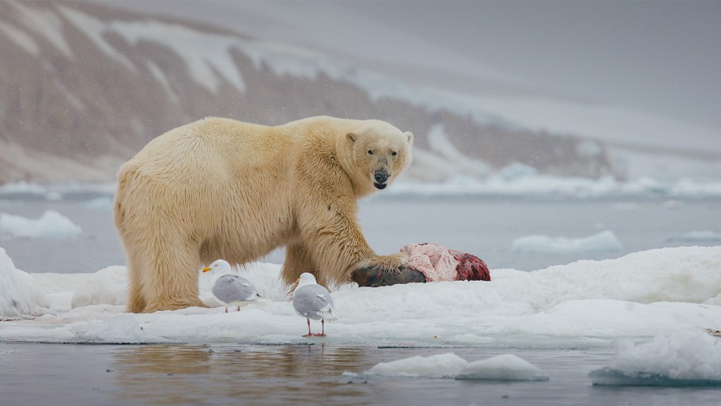 Пилфолд е наблюдавал някои от тези взаимодействия от първа ръка. „Лисиците ще следват следите на полярните мечки, чакайки те да изоставят част от плячката. Птиците също ще прелитат над тях и ще чакат своя ред Това е просто какофонията от звуци, издавани от чайки, които се вихрят наоколо, като всички се опитват да се доберат до останките на този тюлен“, казва той.