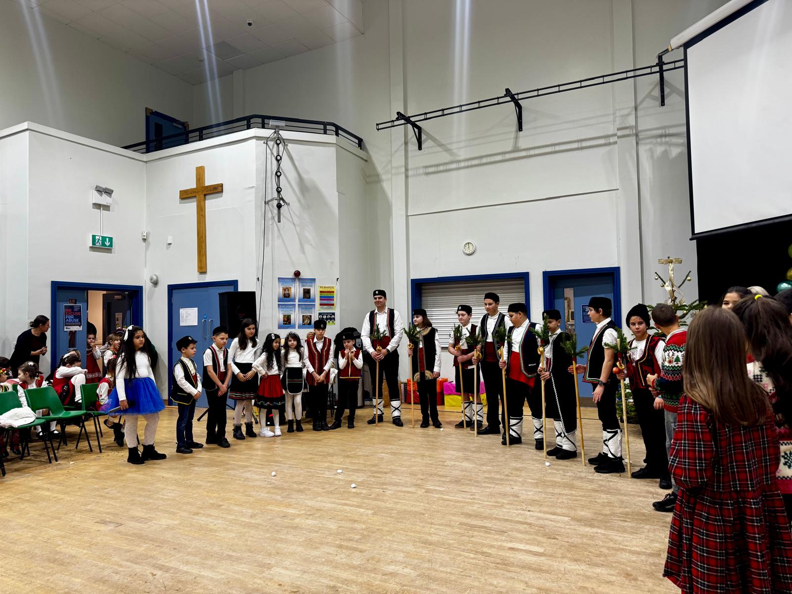 „Концепцията на тържеството беше да покажем как се празнува Коледа в България и в Англия и че въпреки различните традиции ни обединяват обичта към семейството, надеждата и вярата в новото начало. Десет деца в народни носии разказаха за българските обичаи, последвани от коледари, фолклорни танци и представяне на английските традиции. Най-малките ученици доукрасиха елхата с песни и танци, а Дядо Коледа зарадва всички деца с подаръци“, споделя екипът на Българското неделно училище.