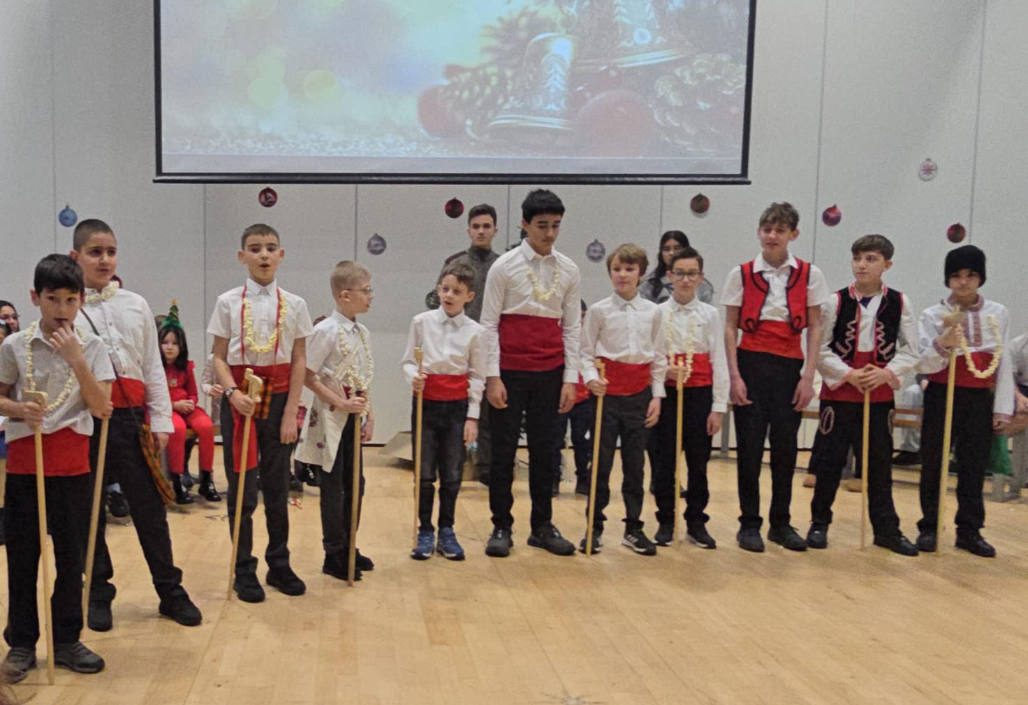 Вълнуващо е и пресъздаването на обичая коледуване. Учениците се докосват до българските традиции, облечени в празнични носии, и с коледарски песни и наричания носят радост и благословия.