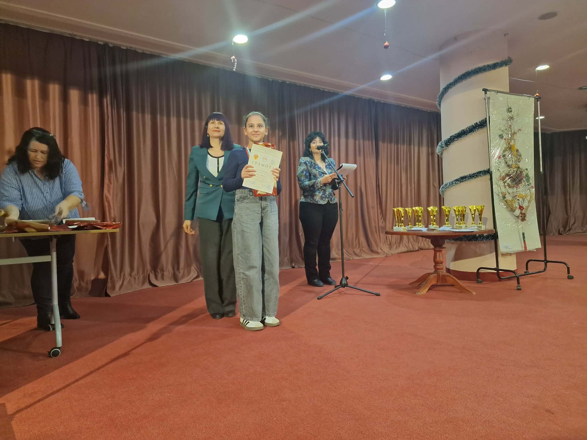 Част от наградите връчва и директорът на ЦУТНТ – Разград, Цветанка Русева, която отбелязва, че конкурсът дава сцена на децата, които превръщат идеите си в малки коледни чудеса.