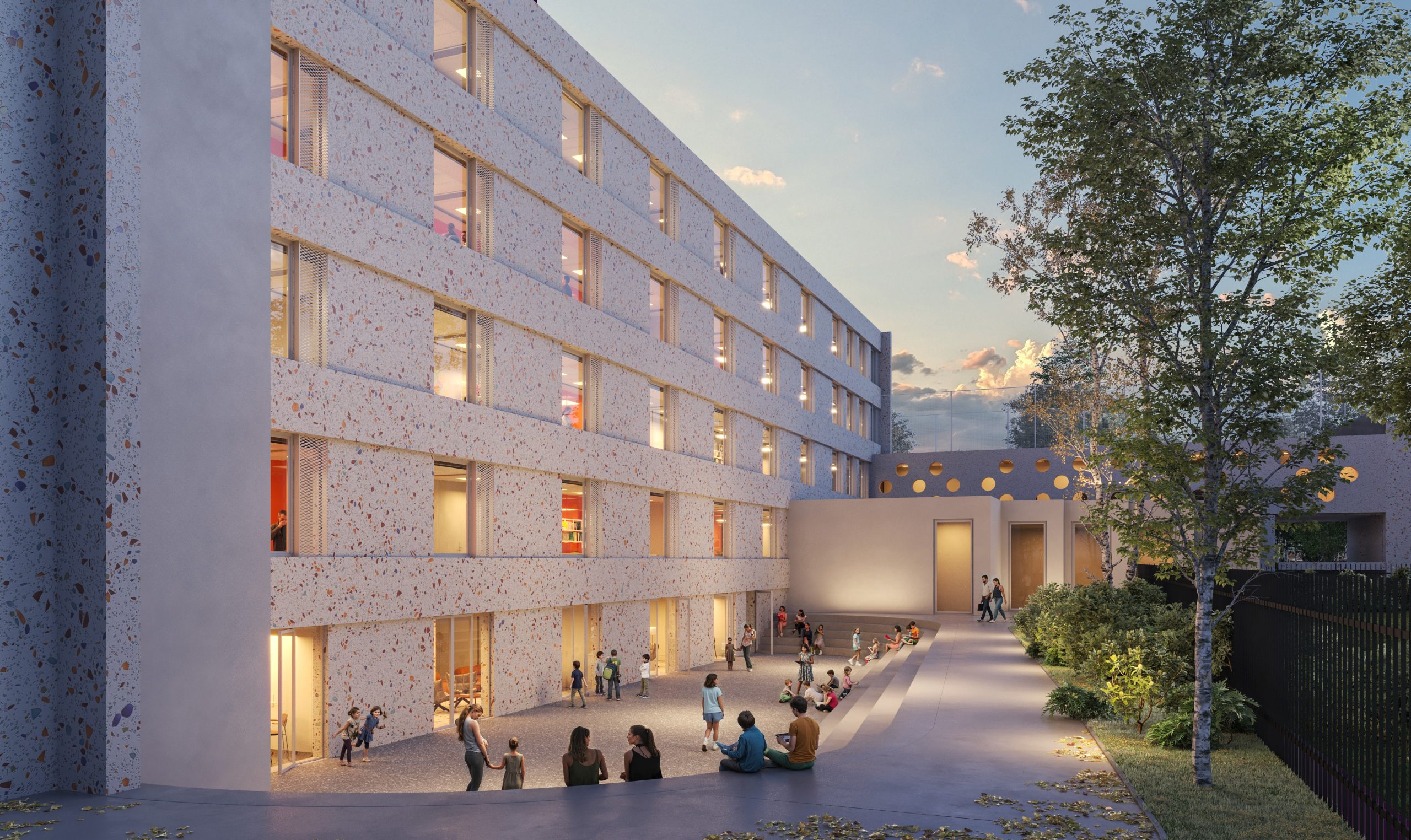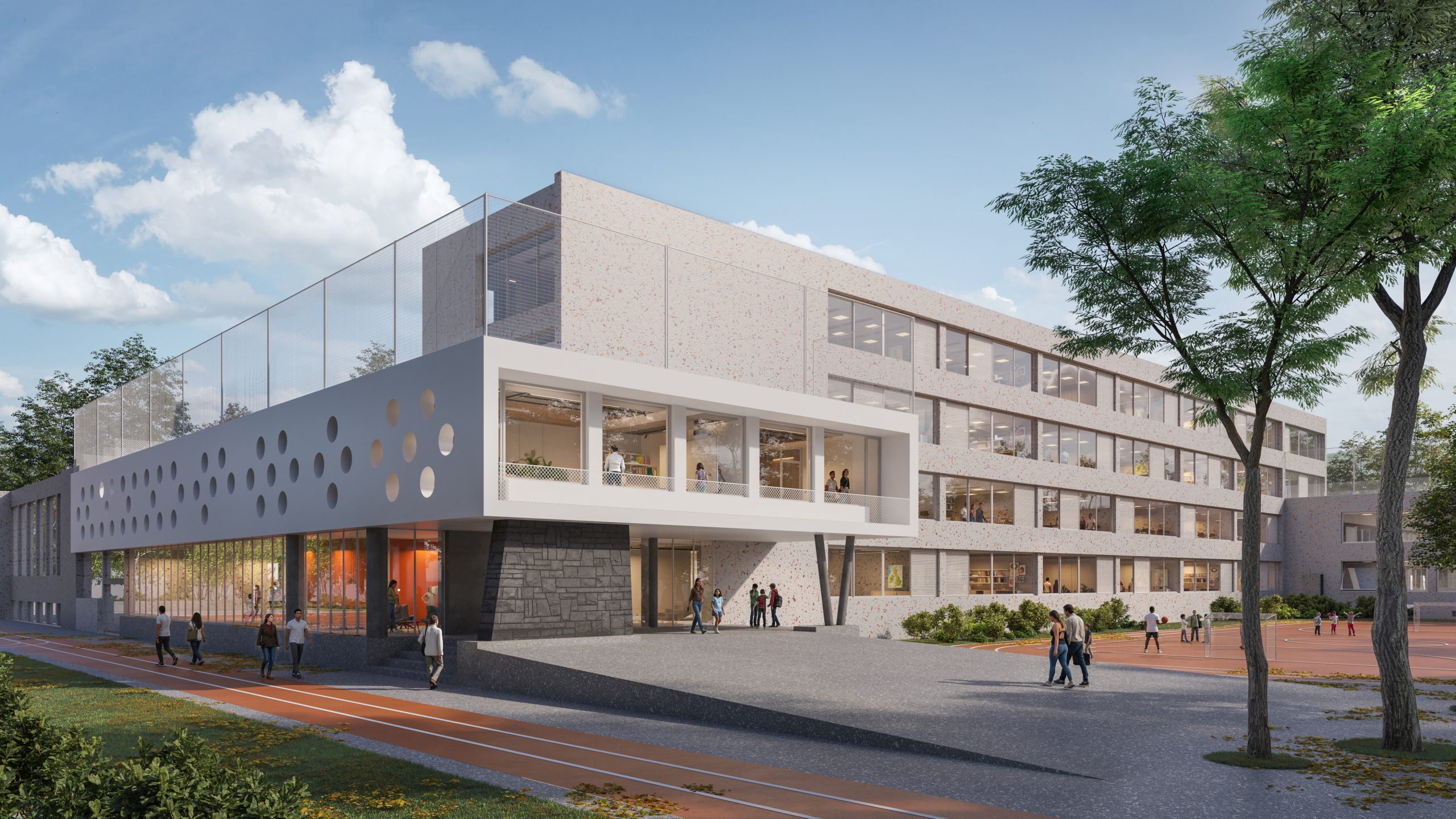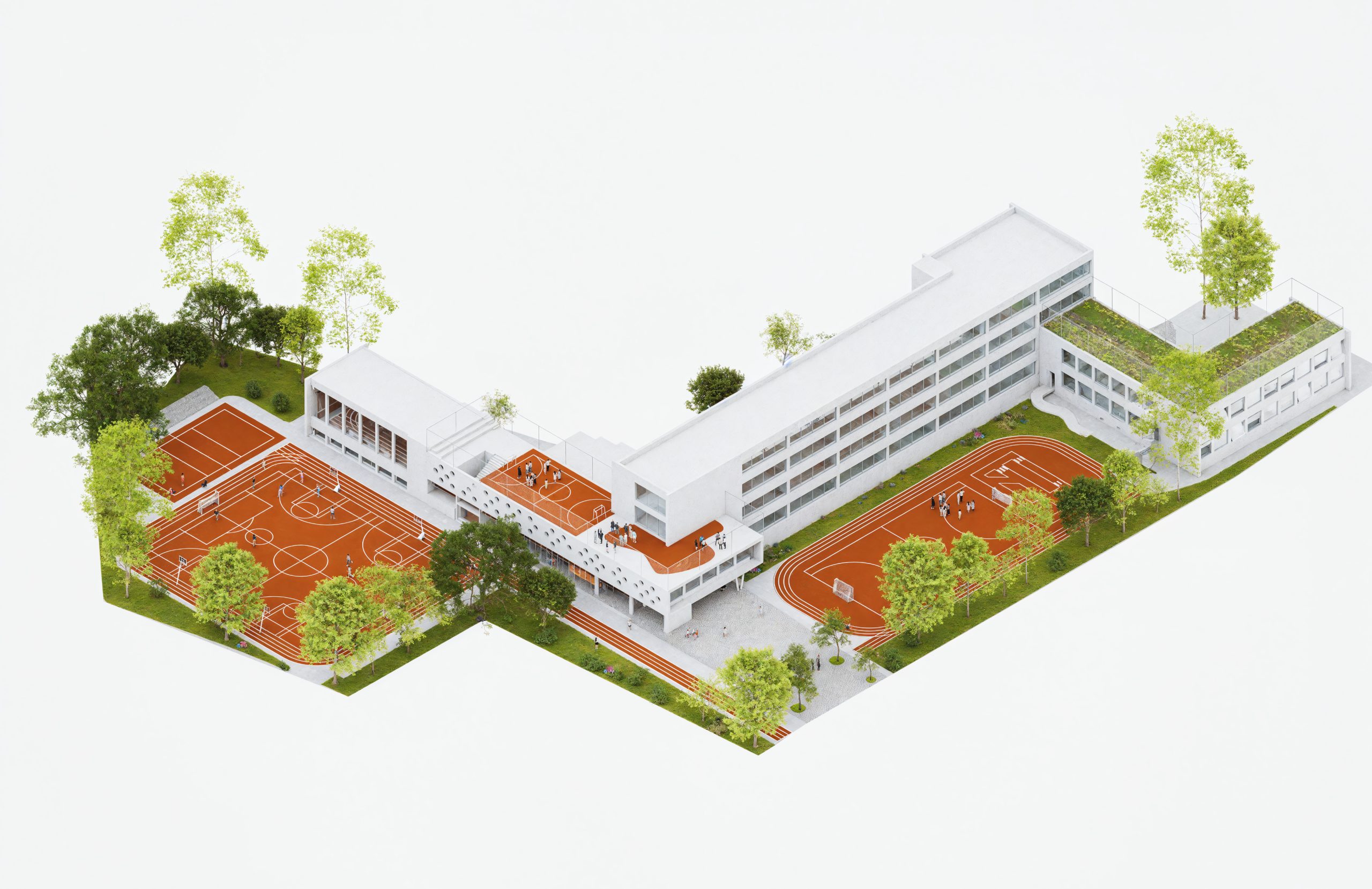 Освен това ще бъдат обособени нова библиотека и танцов салон, зона за уроци на открито върху оползотворените покриви, спортно игрище на покрива на административния корпус, който ще бъде напълно реконструиран, пълна достъпност чрез нов асансьор и адаптирани рампи на всички входове, както и изцяло нов двор с игрища, писти за бягане и зони за отдих.