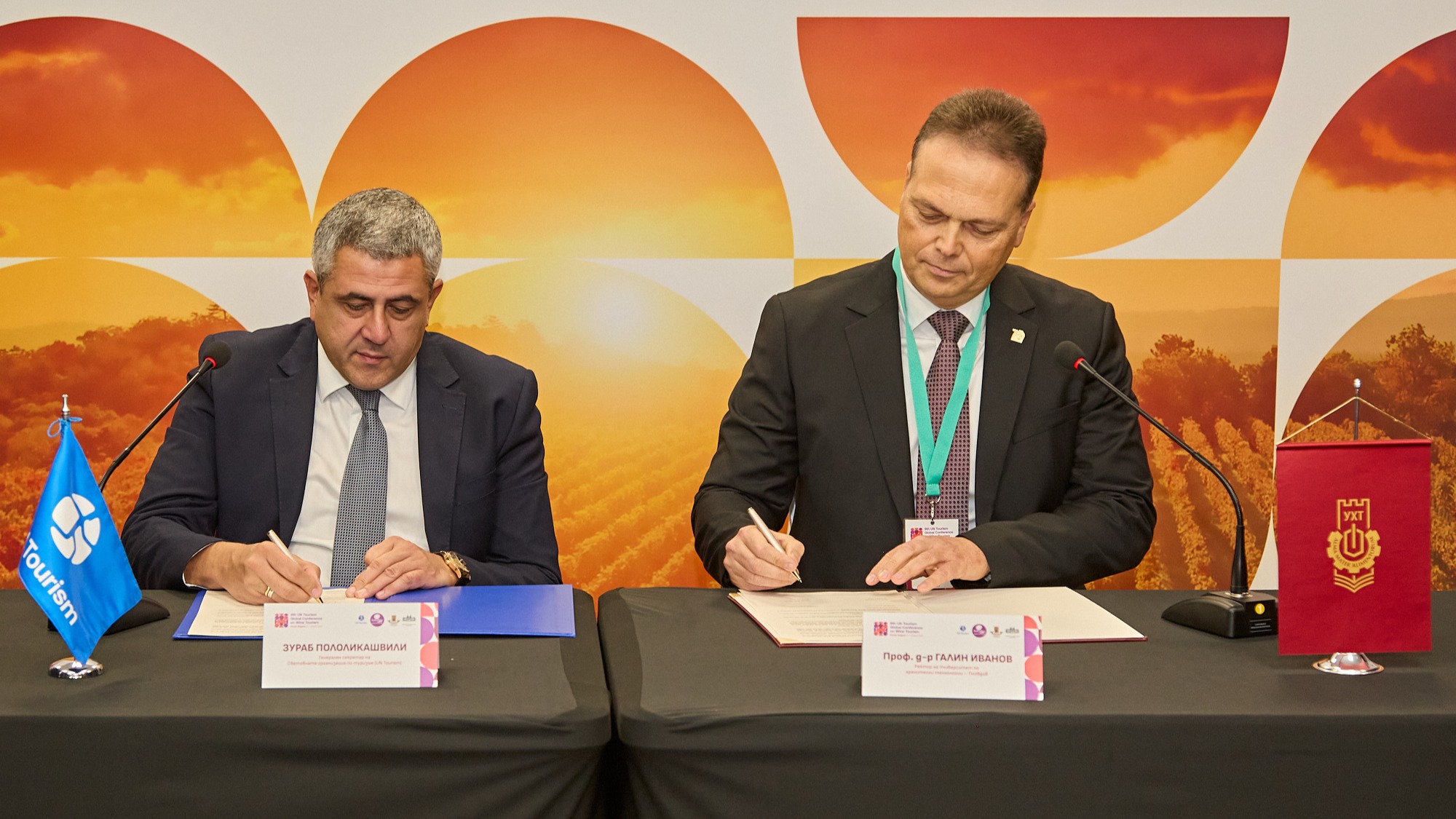 Ректорът на Университета по хранителни технологии – Пловдив, проф. Галин Иванов подписа меморандум с генералния секретар на Световната организация по туризъм UN Tourism Зураб Пололикашвили, съобщават от висшето училище. Това се случи по време деветото издание на Глобалната конференция за винен туризъм на Световната организация по туризъм към ООН.