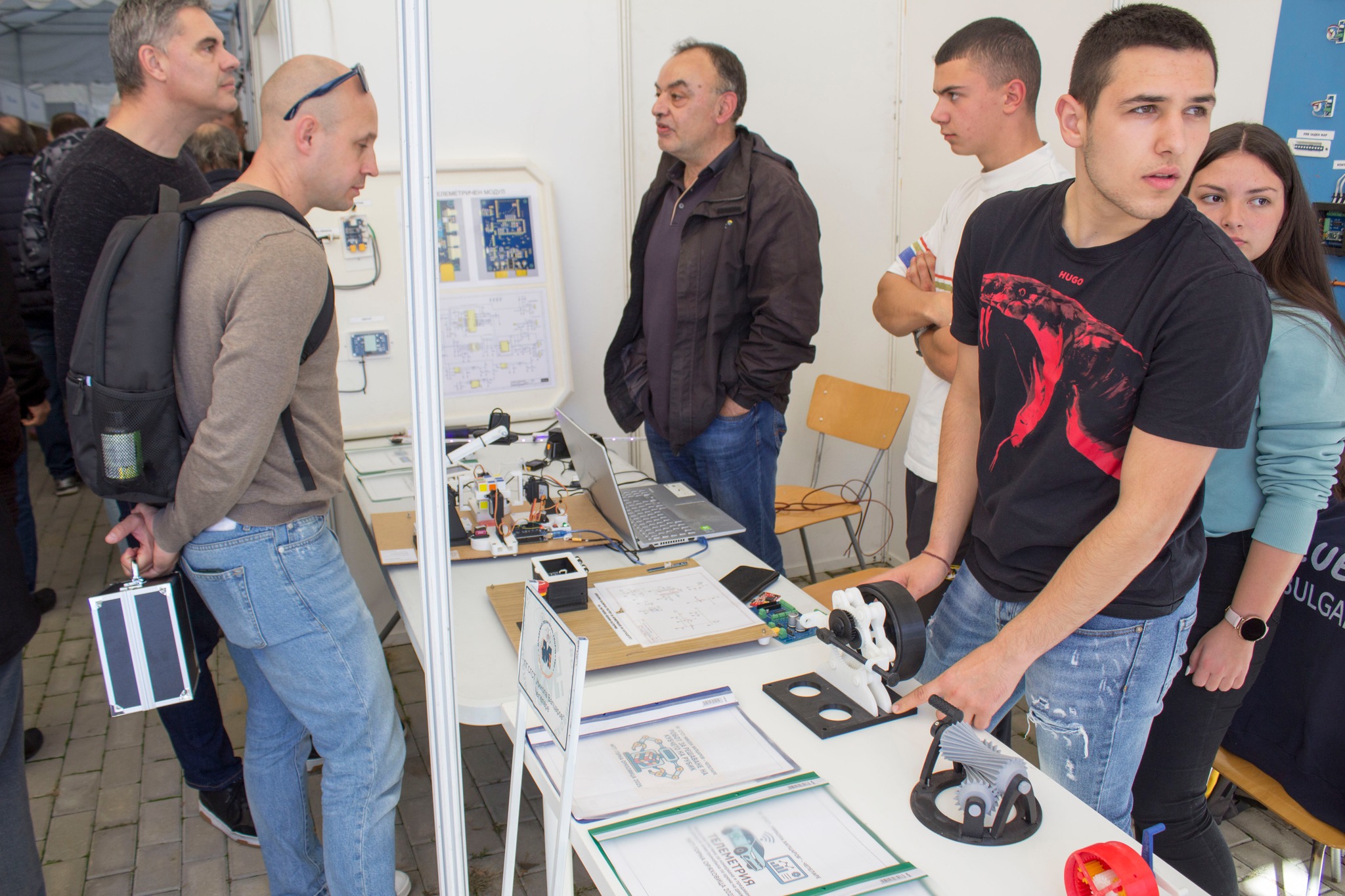 Част от тазгодишното техническо изложение-конкурс са и деца от III до V клас, които демонстрират колички, управлявани с изкуствен интелект. Инж. Владимир Григоров отбелязва, че това е показателно за връзката и пътя от най-малките деца до университетите.