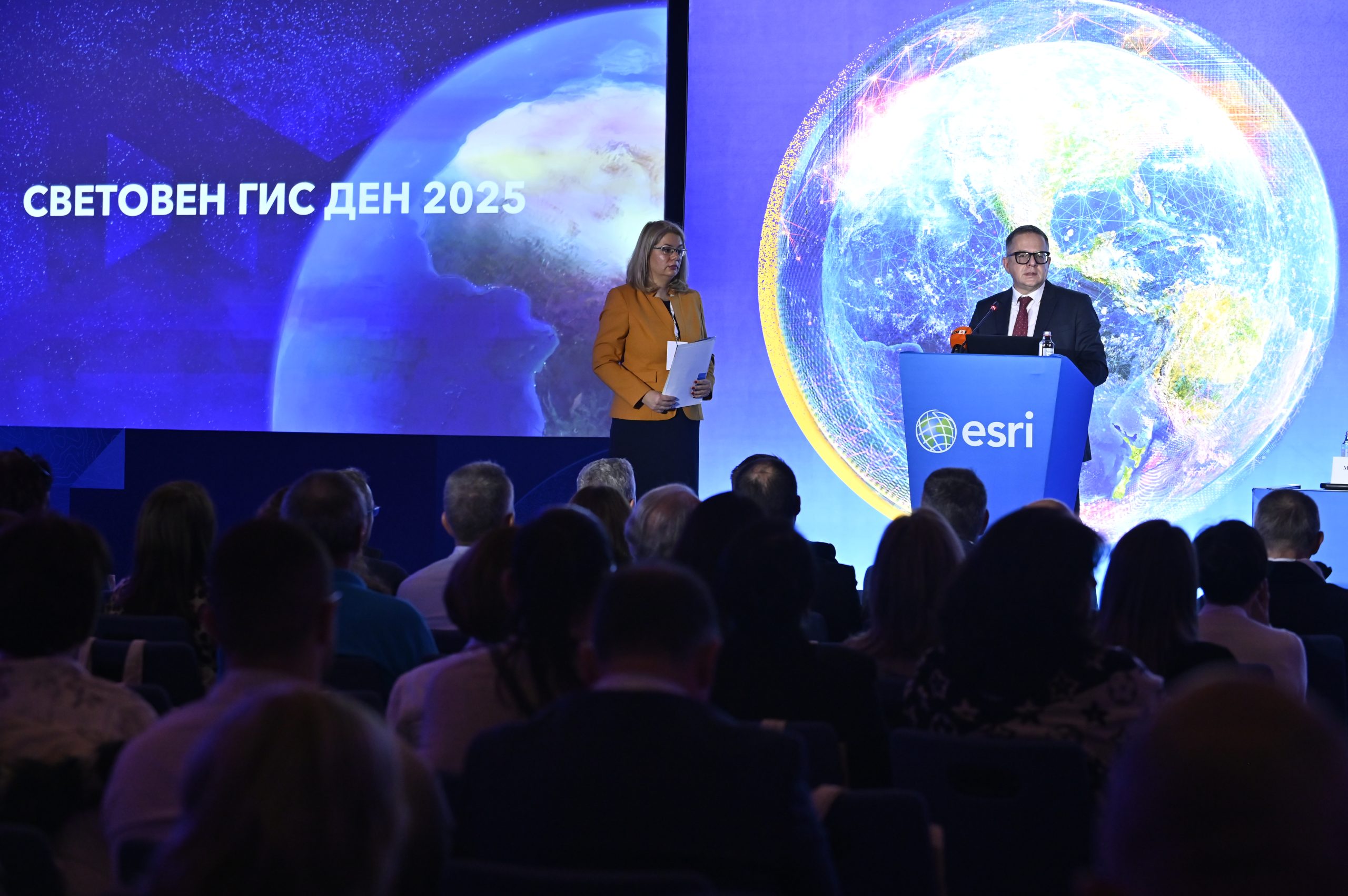 „„Благодаря на „ЕСРИ България“ за успешното ни партньорство по изграждането на Единната информационна точка –  ключов елемент от нашата европейска интеграция. Днес всекидневието ни е немислимо без ГИС. В транспорта те са гръбнакът на интеграцията: национална транспортна схема, цифрова инфраструктура и интелигентни решения за управление. Устойчивостта изисква пространствено мислене – зелени системи, надеждно устройство на територията и адекватен отговор на климатичните промени. ГИС ни дават инструментите да планираме риска и адаптацията“, отбеляза Гроздан Караджов.