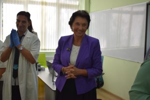 Тя наблюдава и опити, които учениците правиха в новите кабинети.