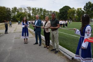 Открито бе и реновираното футболно игрище на гимназията, финансирано с 200 000 лева от Програмата на МОН за изграждане и основен ремонт на спортни площадки и физкултурни салони в държавните и общинските училища.