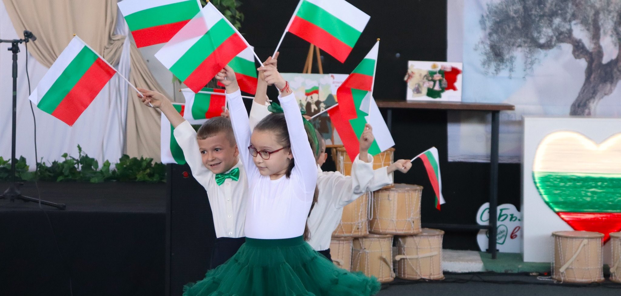 В програмата на спектакъла оживяват патриотични стихове, обичани български песни и вдъхновени от родния фолклор танцови съчетания, изпълнени от малките дарования.