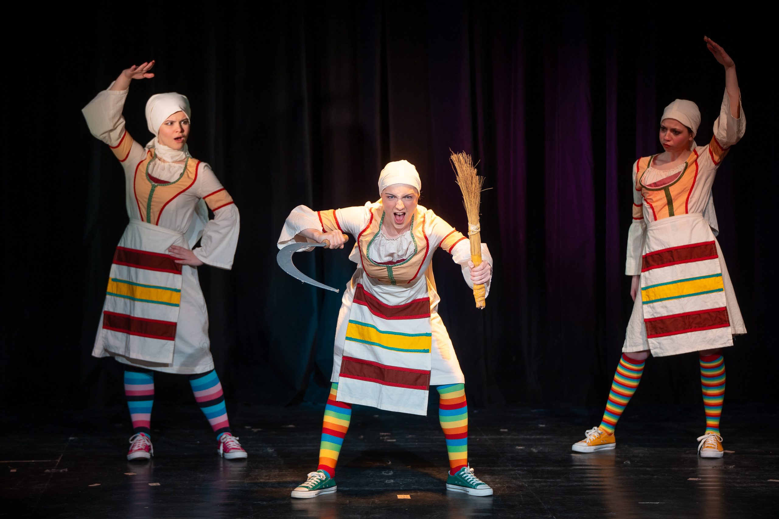 „Пеещи жътварки“ е първият етюд от десетте – все по творби на световно утвърдени имена в изобразителното изкуство, които дипломантите от IV курс „Актьорско майсторство за куклен театър“ на доц. Боряна Георгиева в НАТФИЗ представят в спектакъла „Театрална изложба“. Сред шедьоврите са „Пушачът“ на Пол Сезан и „Копаеща селянка“ на Ван Гог, „Гуляйджии“ на Ян Стен и „Получаване на писмо“ на Герард Терборх, както и скулптурата „Работник и колхозничка“ на Вера Мухина. Има и други, но няма да издаваме всичко.