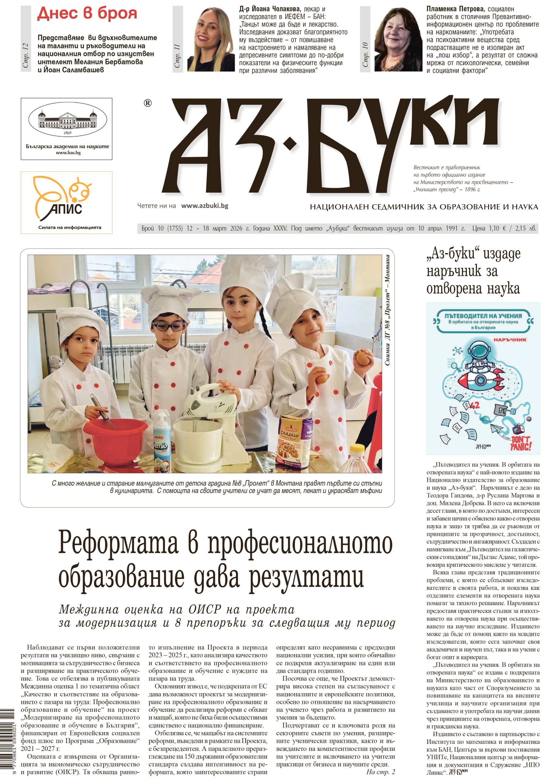 <h4><img class="size-medium wp-image-225975 alignleft" src="https://azbuki.bg/wp-content/uploads/2026/03/v.-az-buki-br-10-215x300.jpg" alt="" width="215" height="300" /></h4> <h4>В новия брой четете:</h4> - Реформата в професионалното образование дава резултати - „Аз-буки“ издаде наръчник за отворена наука - МОН дава начало на конкурса „Млади таланти“ - Среща на изкуствата в Стара Загора - Как се постига дисциплина в училище - Д-р Антони Рангачев, главен асистент в Института по математика и информатика – БАН: България създава световна наука - Защо тийнейджърите посягат към наркотиците - Велико Търново става световна сцена на млади оперни изпълнители [flipbook pdf="https://azbuki.bg/wp-content/uploads/2026/03/v.-az-buki-br.-10-2026-g.pdf"] <a href="https://azbuki.bg/wp-content/uploads/2026/03/v.-az-buki-br.-10-2026-g.pdf" rel="noopener">Изтеглете</a> броя на вашeто устройство.