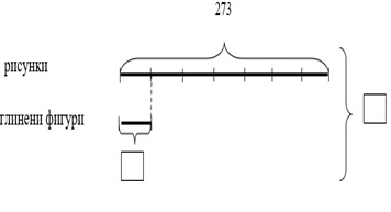 При работа с готови схематични модели те изграждат знания и умения у учениците да разчитат моделите, на базата на текста да откриват важни връзки в модела и обратно. Тези чертежи, от една страна, се използват за улесняване разбирането на математическата същност на текстовите задачи, а от друга – за записване на условието ѝ. Например за задачата-процедура с връзки: За края на учебната година четвъртокласници направили изложба с 273 рисунки, които били седем пъти повече от глинените фигурки. Колко общо изделия са направили четвъртокласниците за изложбата? Такъв модел е: