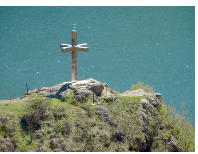 Keywords: preservation of natural landscapes; monumental building in the mountains; modern religious building; material expression of patriotism; natural and cultural heritage